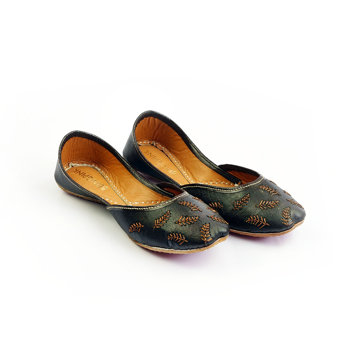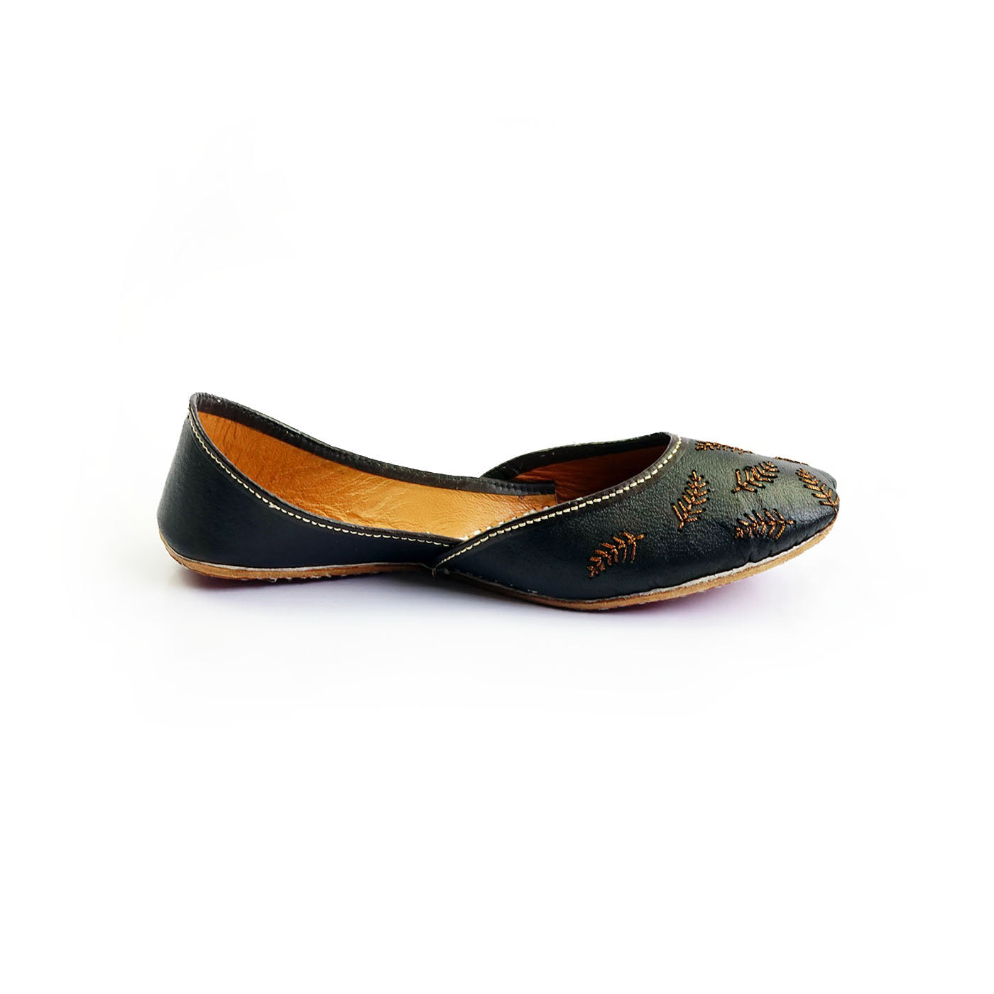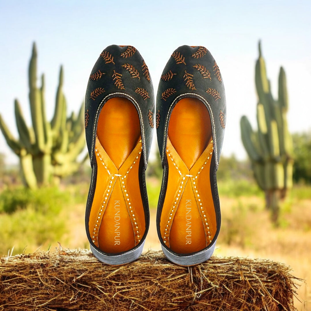 Interlaced feather design with special thread on pure leather upper. Outsole is made of Cow hide. In sock and inner linings are finished with real goat leather. The essence of modern Pakistani aesthetics reflecting the rich heritage of our craftsmanship.