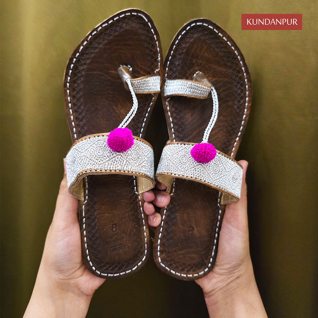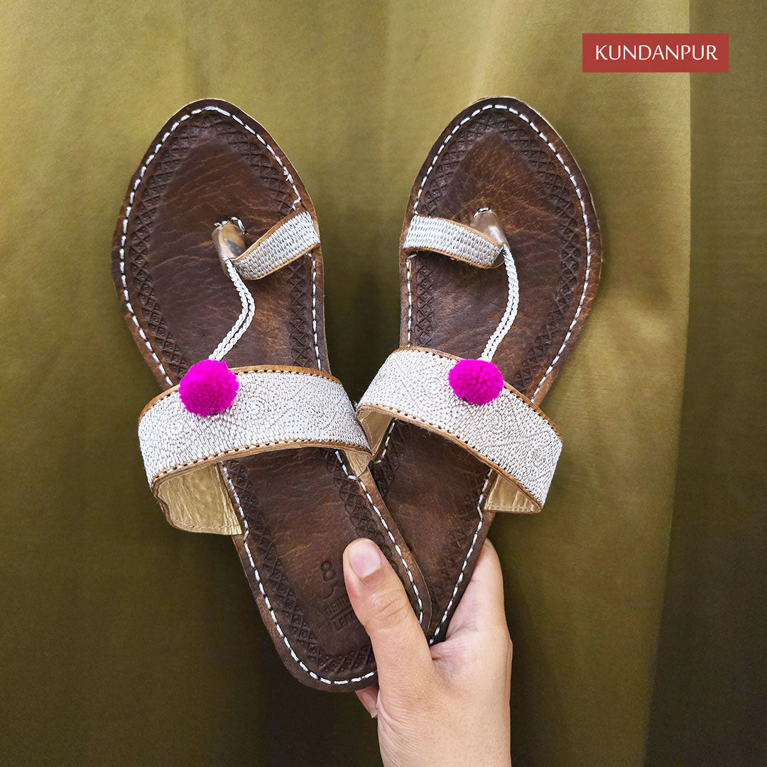 Introducing Women Gold Leather Till-e-Dar Open Back Flats Kolhapuris made of the fine Leather. This beautiful piece of craftsmanship comes from our Kolhapuri Culture collection. Bring home a pair of modern Pakistani aesthetic, reflecting crafts.