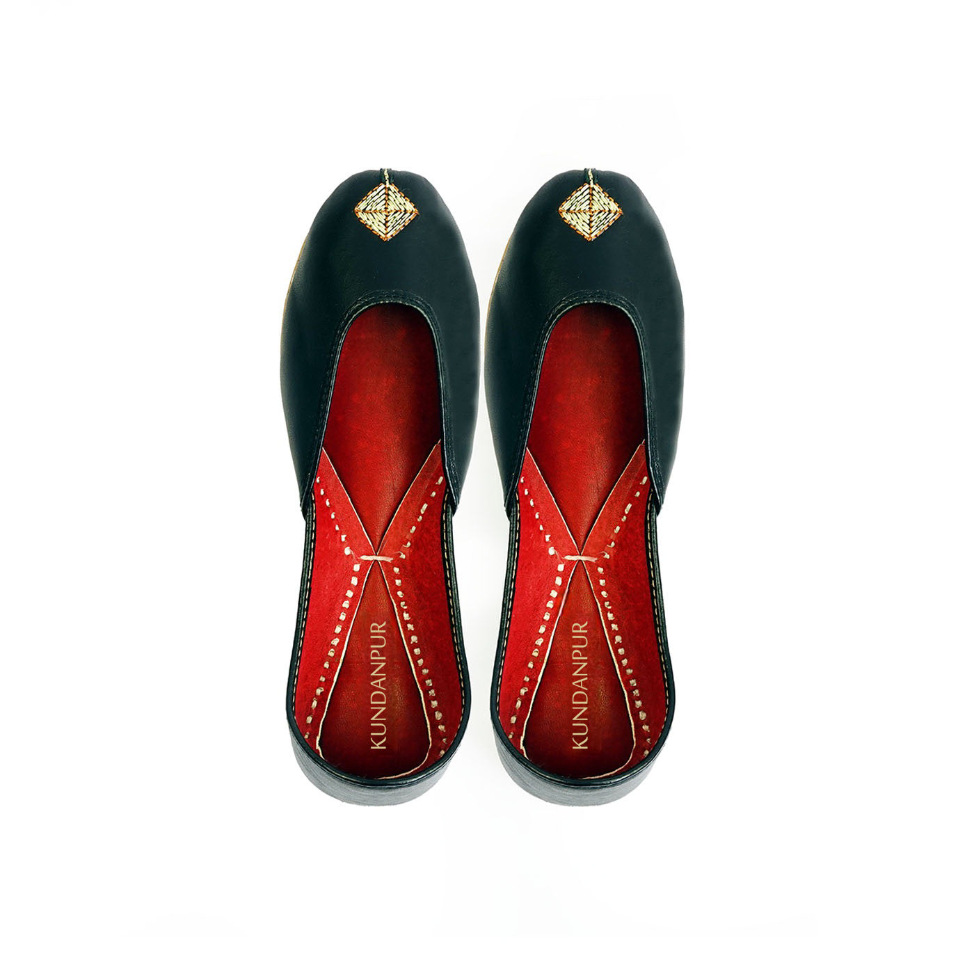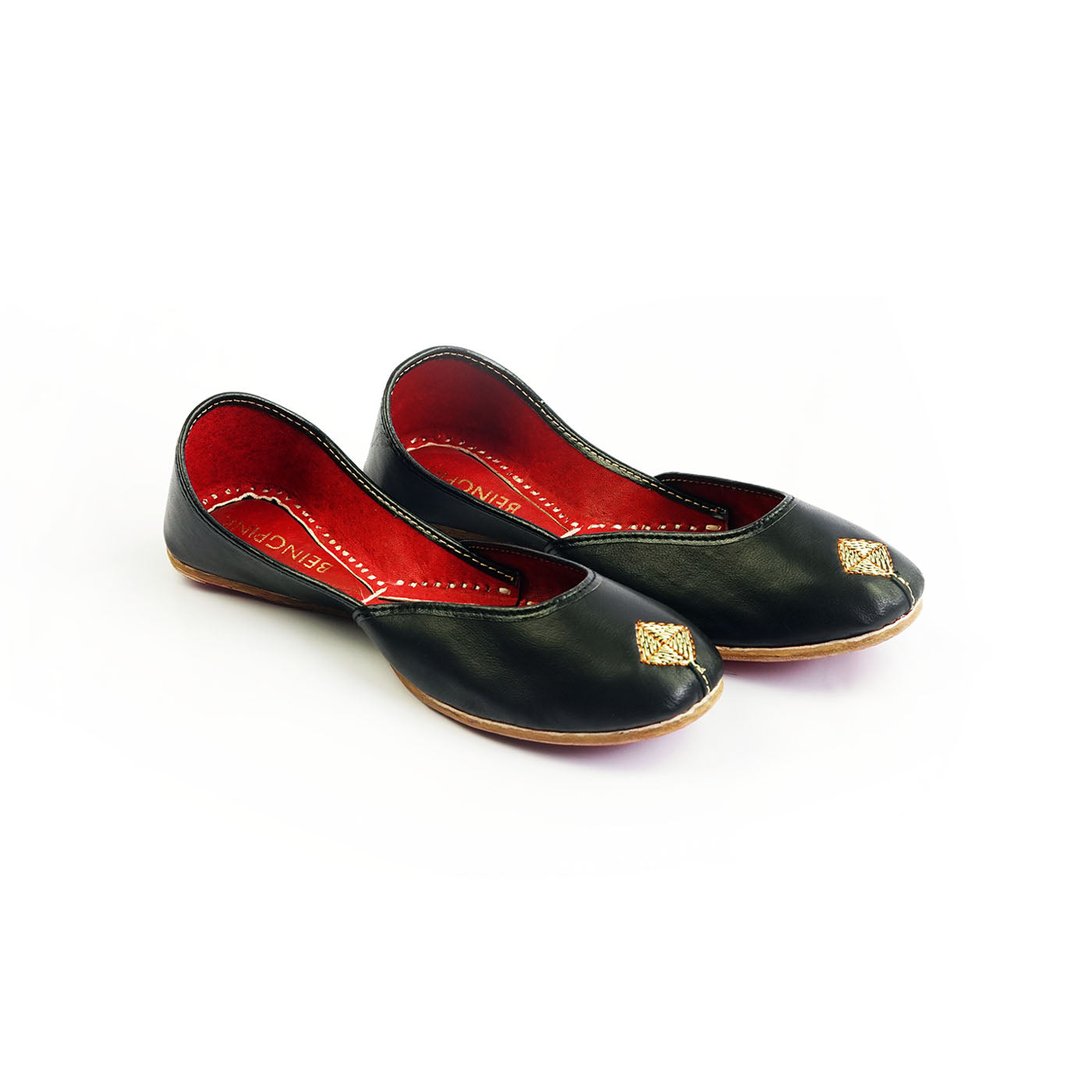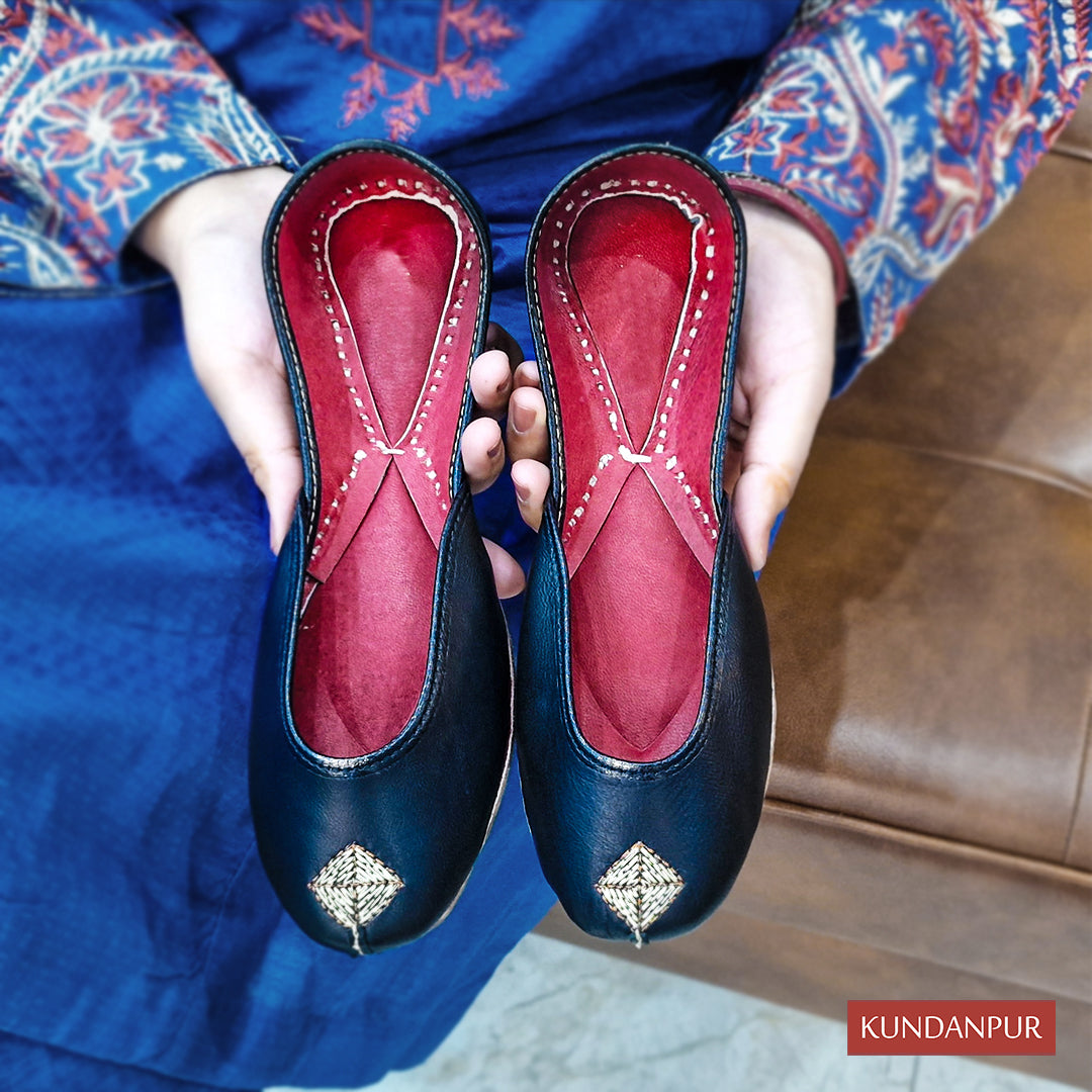 A refined and elegant daily wear Jutti with beautiful Tika design. Outsole is made of Cow hide. In sock and inner linings are finished with real goat leather. With soft inner padding, Comfortable and Durable.
