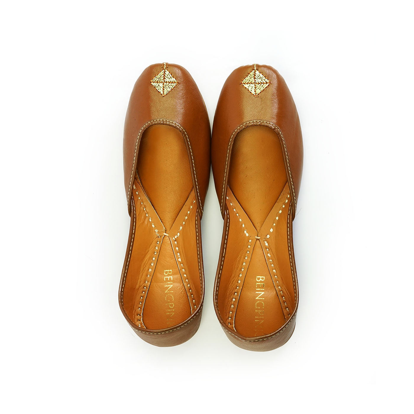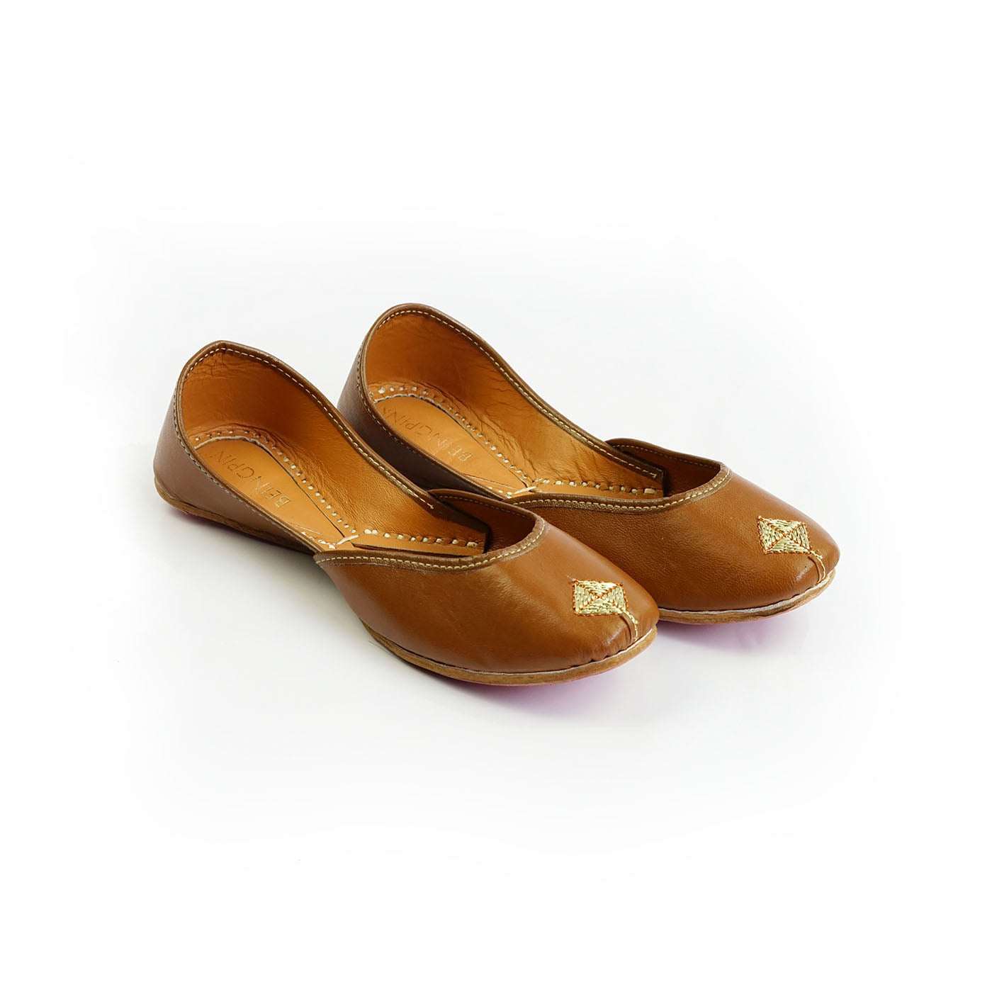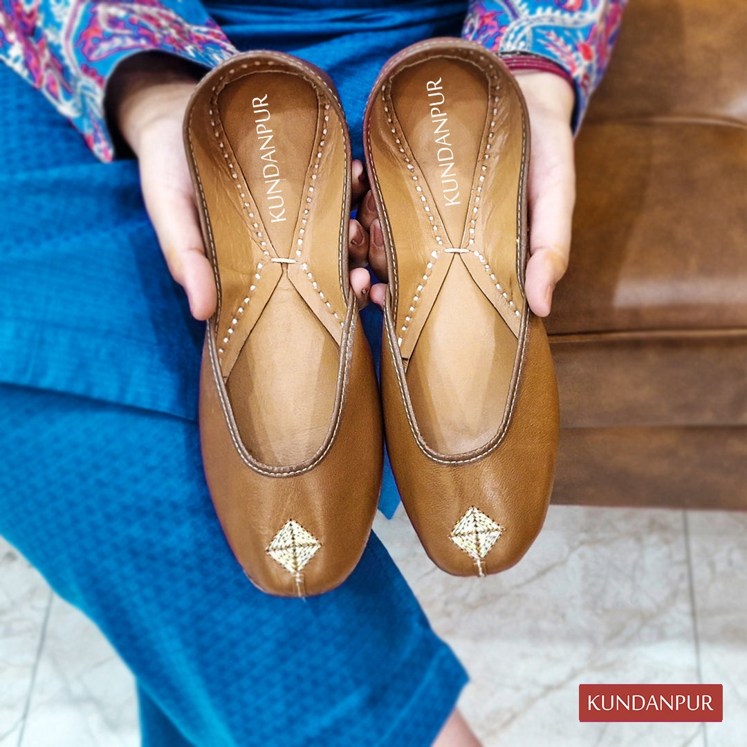 A refined and elegant daily wear Jutti with beautiful Tika design. Outsole is made of Cow hide. In sock and inner linings are finished with real goat leather. With soft inner padding, Comfortable and Durable.