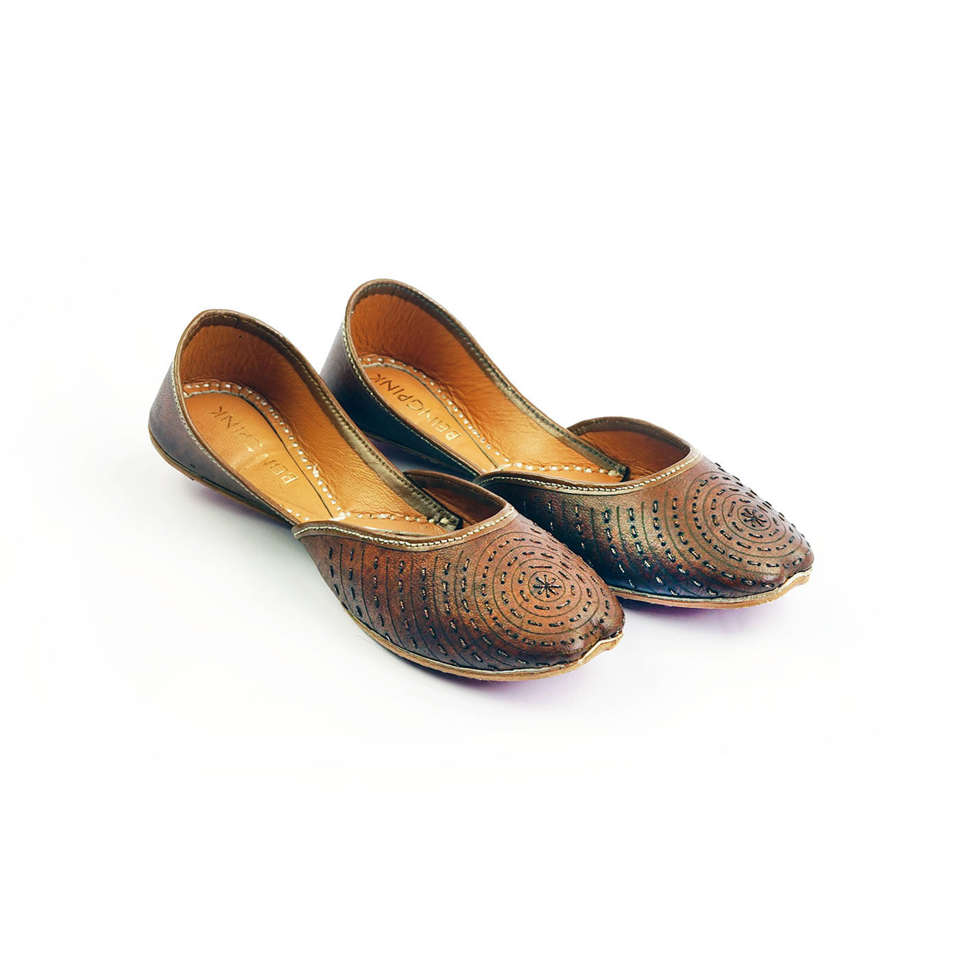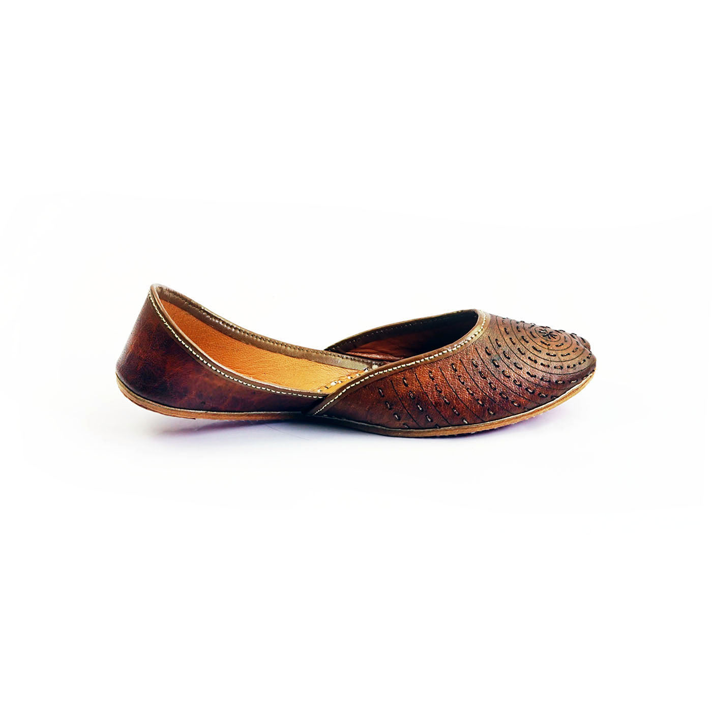 Circled and interlaced threads that creates a lovely design on Real leather upper. In sock and inner linings are finished with real goat leather. With soft inner padding, Comfortable and Durable.