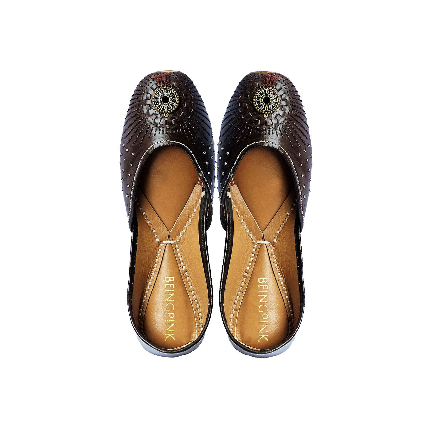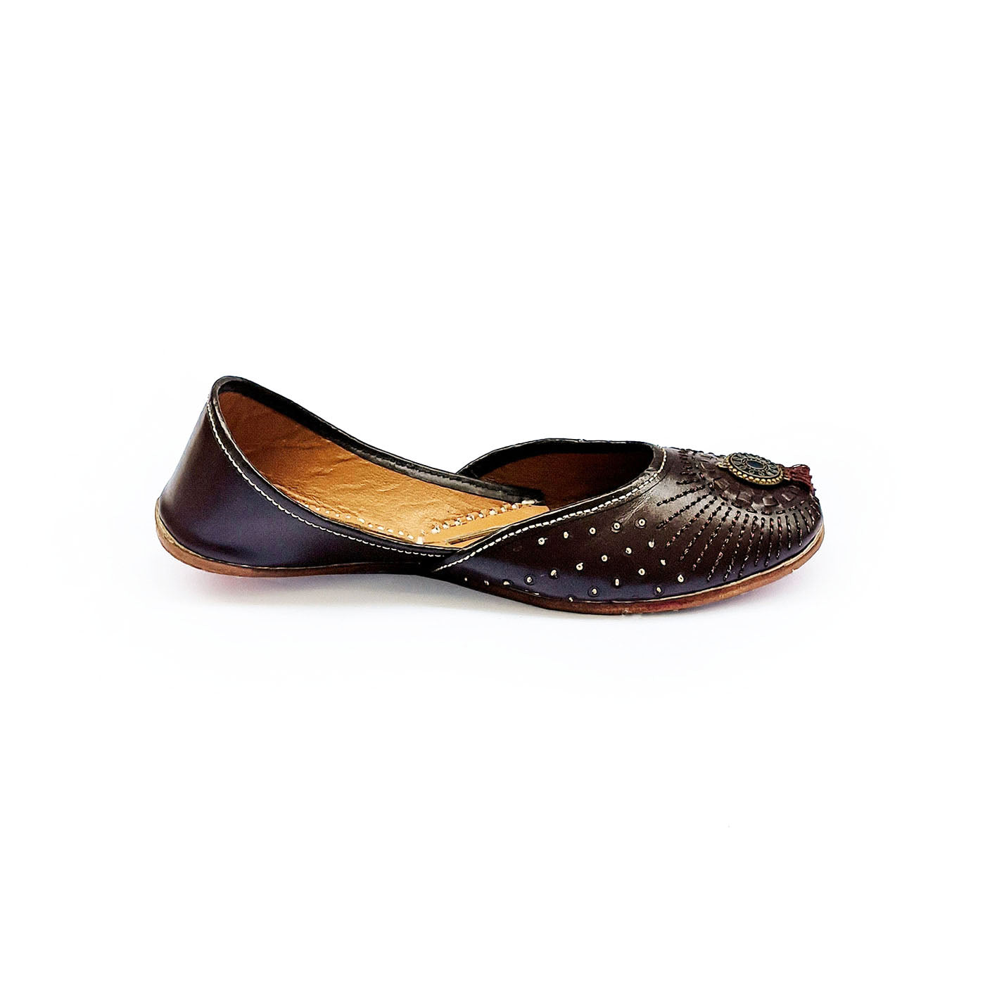Fine interwoven thread and bead design on Real Leather. Outsole is made of Cow hide. In sock and inner linings are finished with real goat leather. With soft inner padding, Comfortable and Durable.