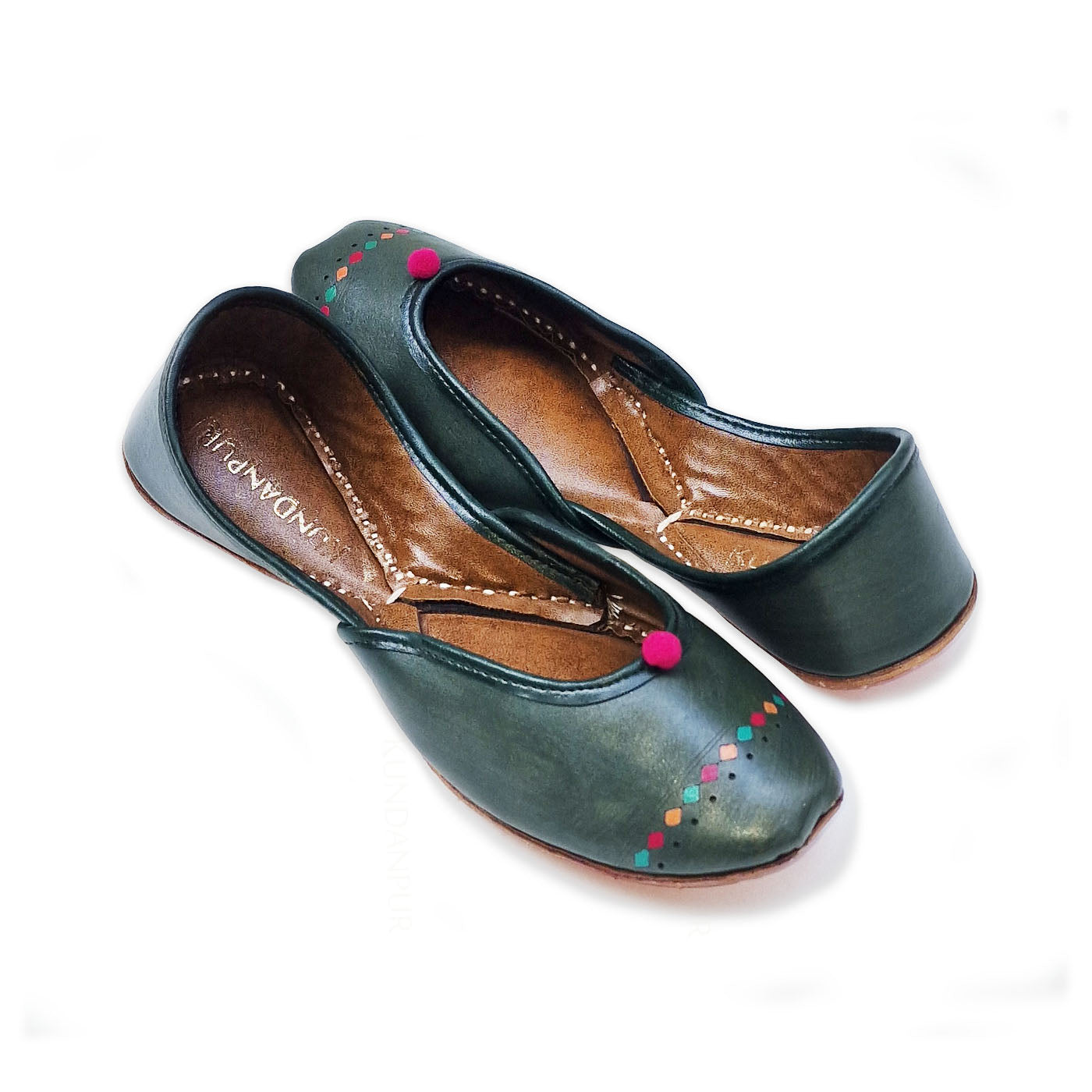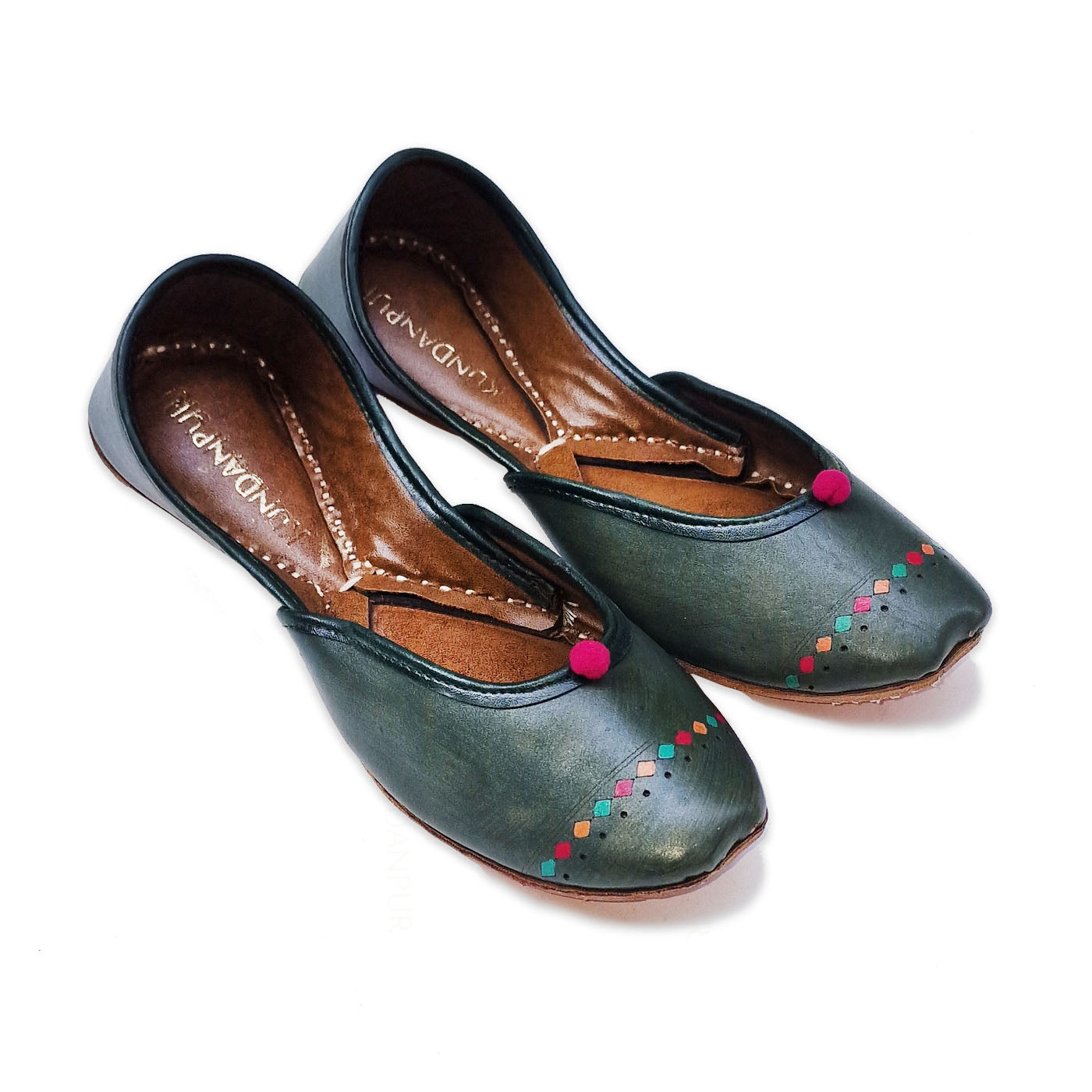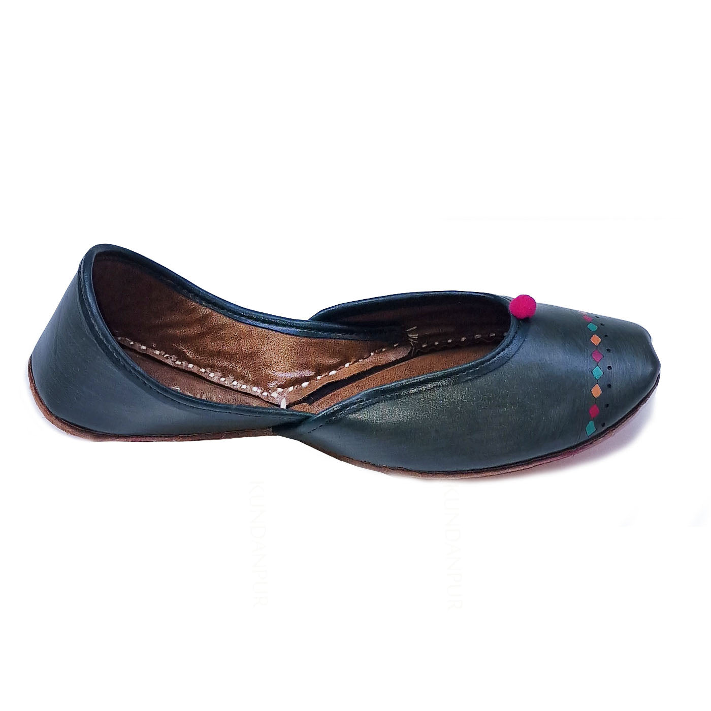 Beautifully designed jutti, made with cow leather. Outsole is made of Cow hide. In sock and inner linings are finished with synthetic leather. With soft inner padding, Comfortable and Durable.