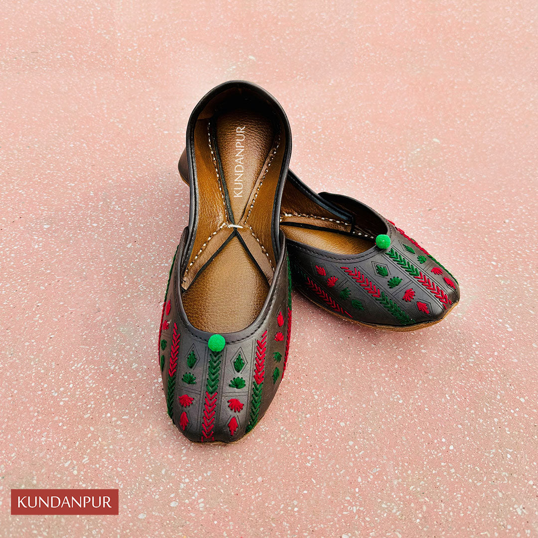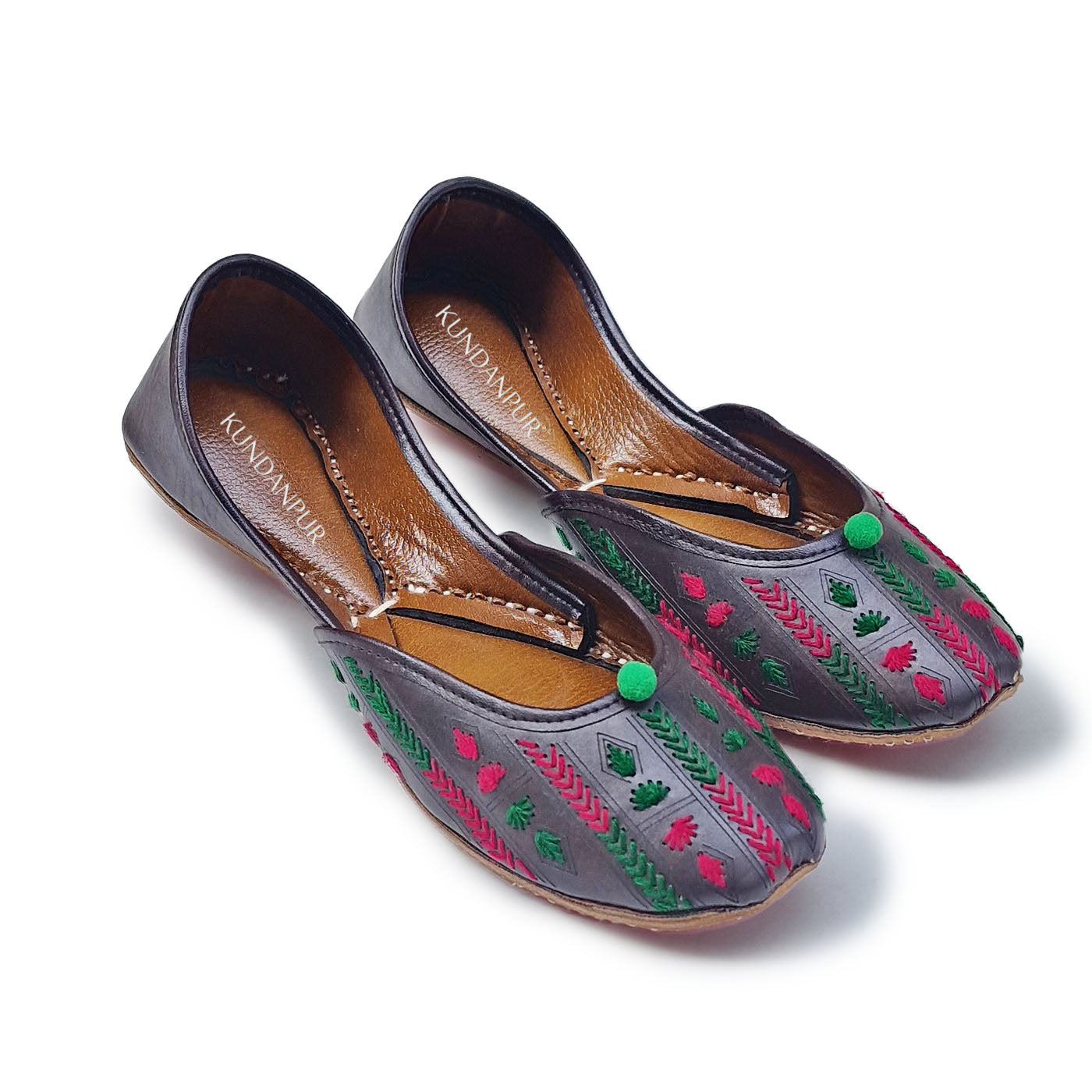 Interlaced upper design with woolen threads on cow leather. Outsole is made of Cow hide. In sock and inner linings is finished with synthetic leather. With soft inner padding, Comfortable and Durable.
